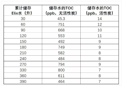 下圖顯示了空氣過(guò)濾器有/無(wú)活性炭的儲(chǔ)水系統(tǒng)中TOC水平。從數(shù)據(jù)中可以看出,達(dá)到平衡后,無(wú)活性炭的空氣過(guò)濾器比有活性炭的空氣過(guò)濾器的儲(chǔ)水系統(tǒng)中的TOC含量高60-100倍。