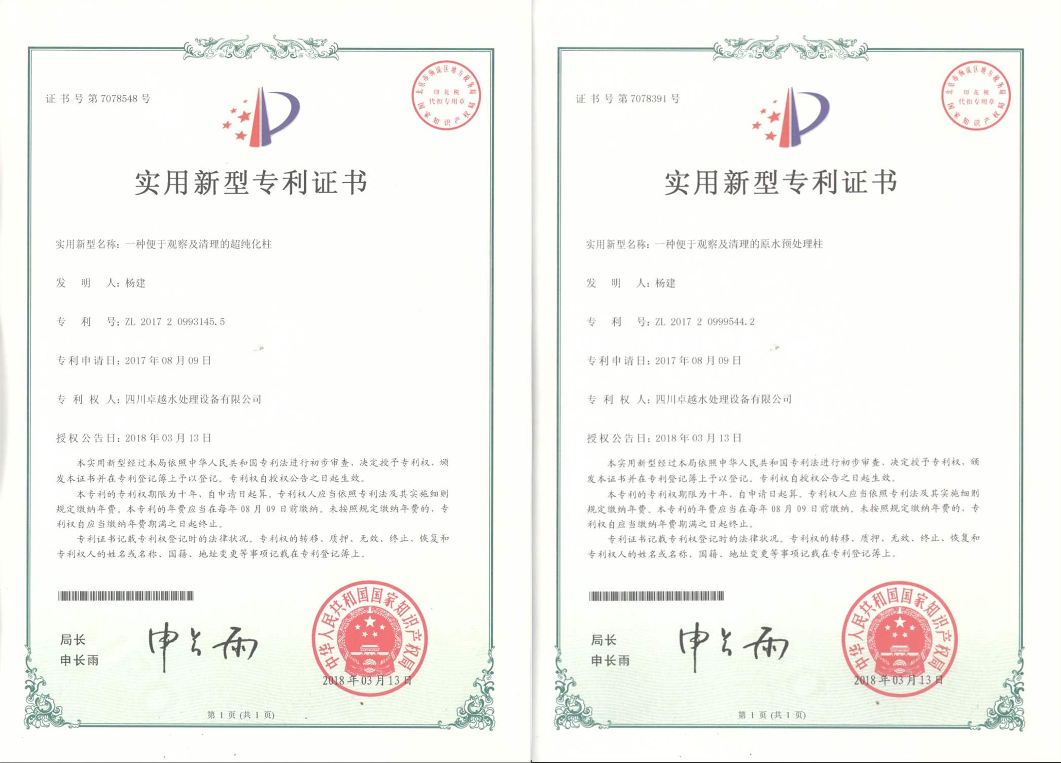 恭喜四川卓越水處理榮獲國家多項新型發明專利!