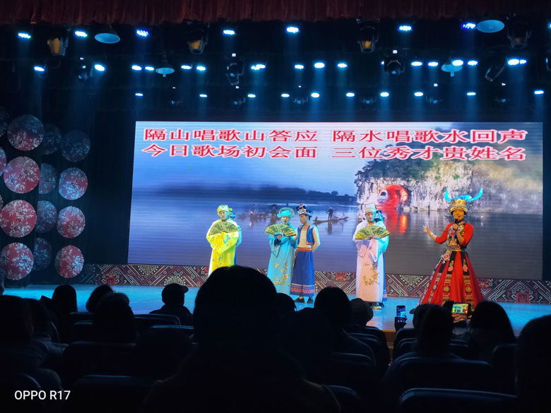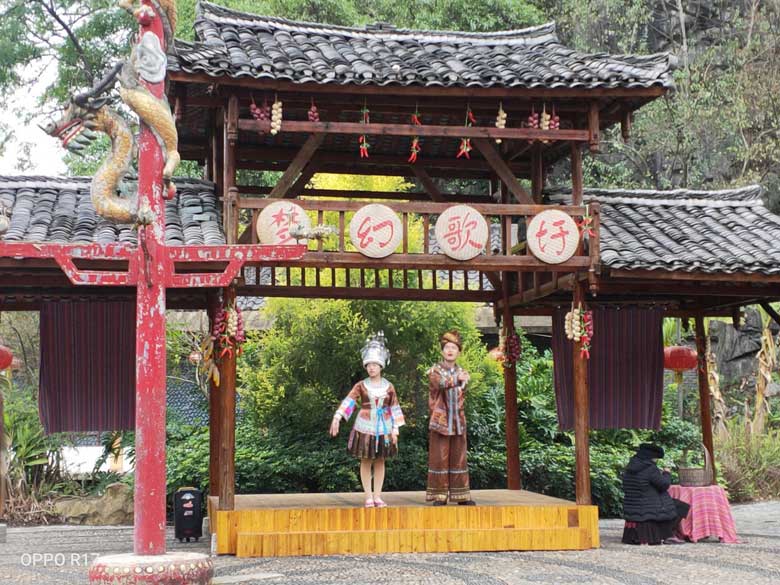 參觀以壯族歌仙劉三姐命名的【劉三姐大觀園】,是展示劉三姐生活、故事的實景地,主要由廣西民族風情和劉三姐文化兩大主題游覽項目組成。 景區的主要景點有金蟾對歌臺、夢幻歌圩、侗家歌臺、劉三姐與阿牛哥定情誓約的百年古榕,還有風雨長廊、壯寨干欄、瑤寨木樓、侗族鼓樓、苗族吊角樓等各類民族建筑及廣西各種民族服飾。