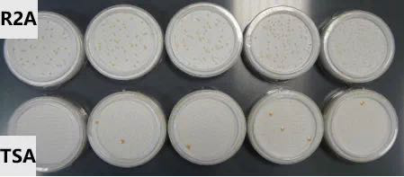 實驗結(jié)論:純水中細(xì)菌培養(yǎng)用培養(yǎng)基推薦(R2A vs TSA) R2A。